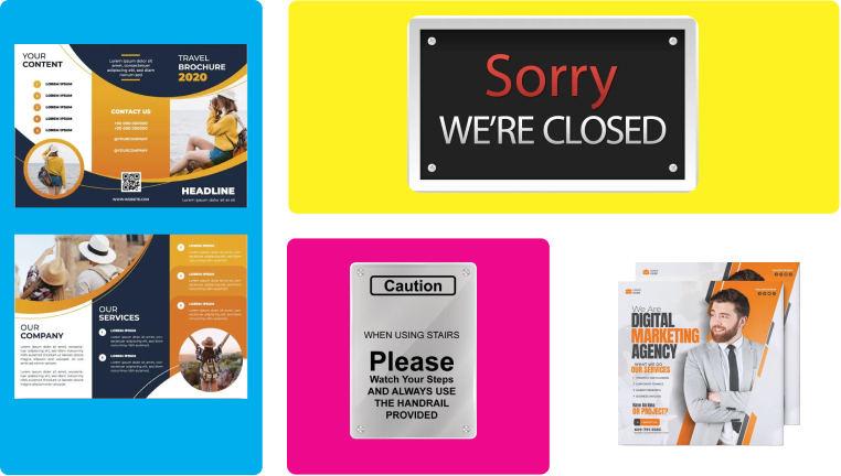 Yes, you can! We specialise in custom promotional materials printing, so you can choose your own sizes, colours, designs and finishes. Just share your ideas with us and we’ll make marketing materials that match your brand perfectly.